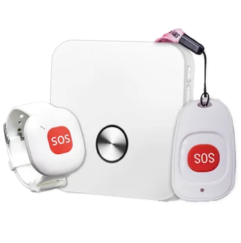 Wireless Medical Alarm Kit Elderly IP65 Wrist Button SOS Lanyard Base Receiver 433MHz 60 Ringtones 4-Level Volume Adjustable